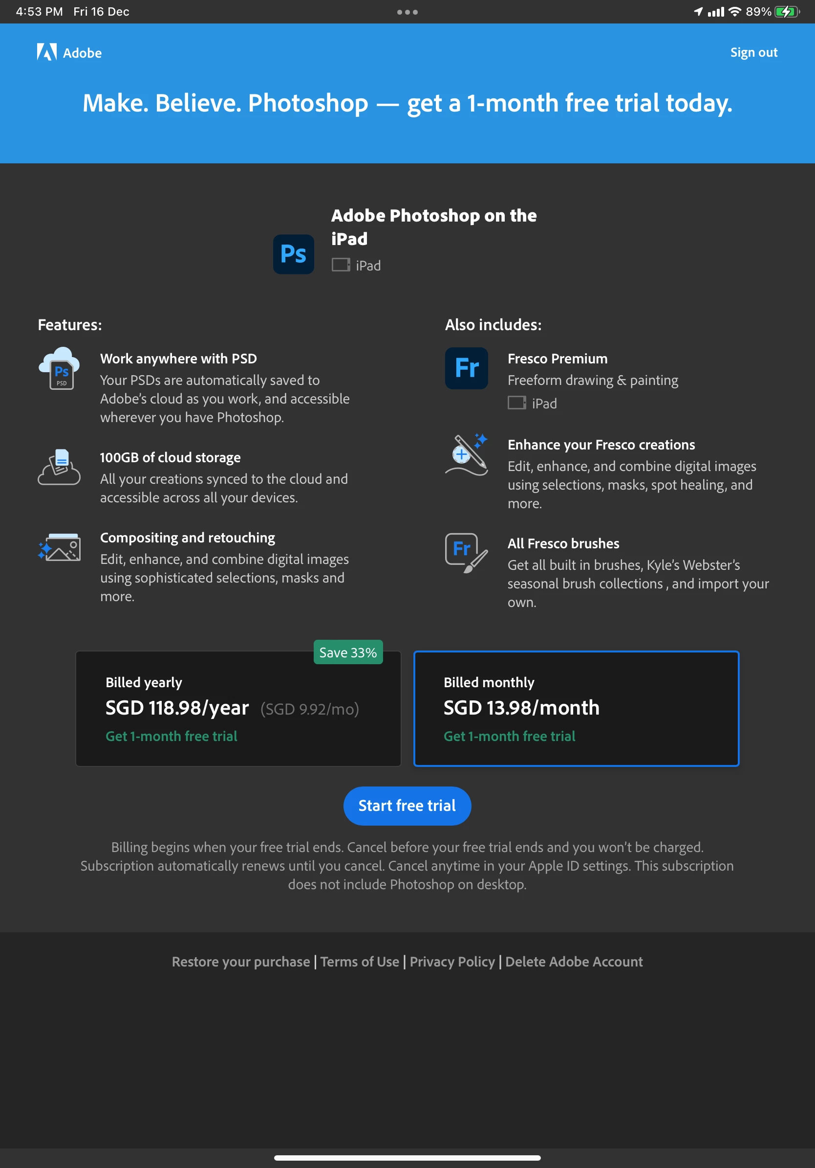 iPad photoshop keep Prompting Subscription/trial, access denied.