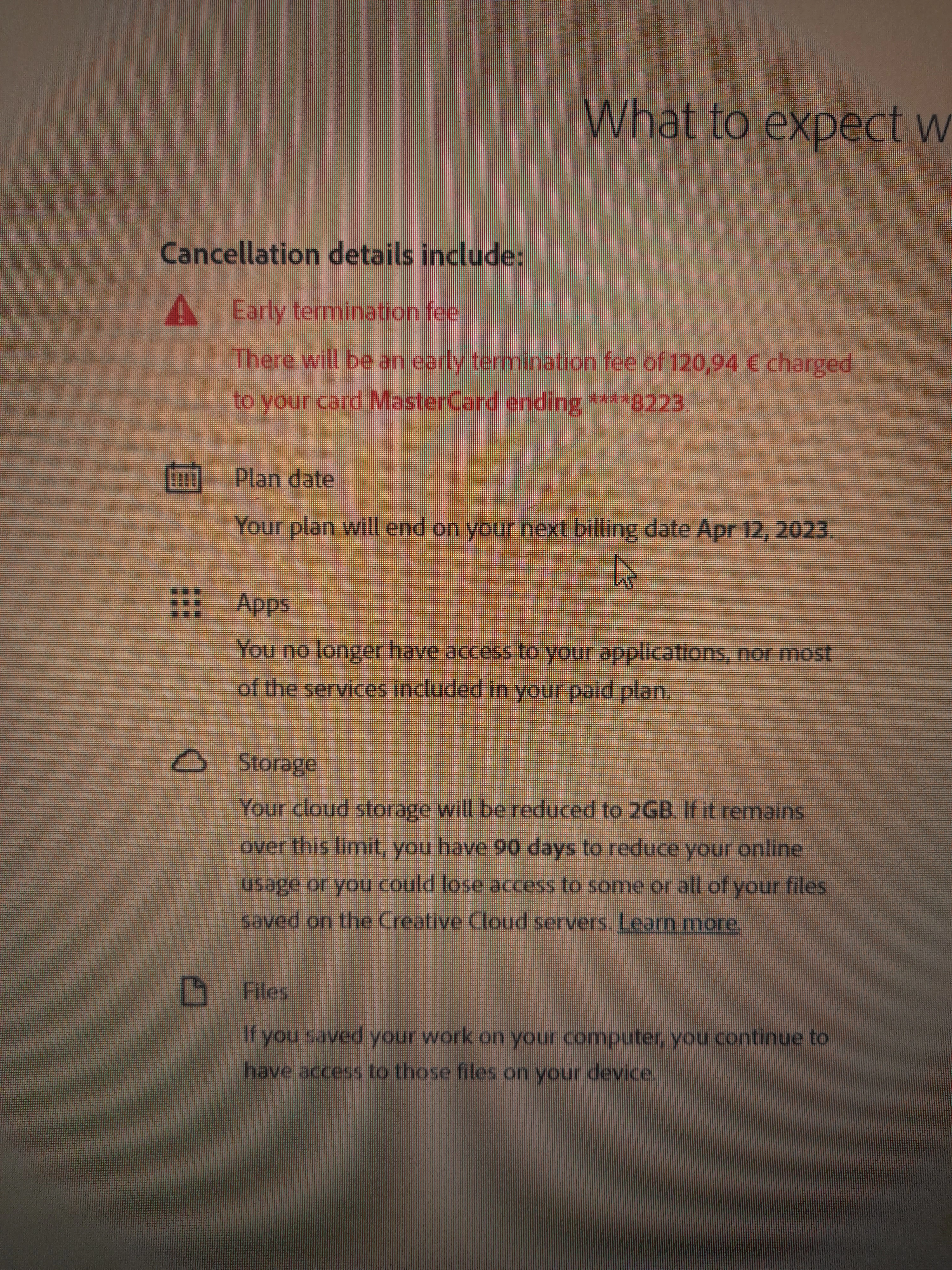 I have month to month plan, where I pay montly . Now I want to cancel my plan and it says I have to pay fee 120 euros??? What is that?