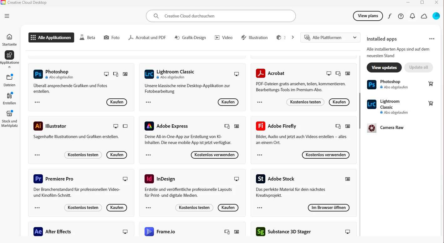 3. Starten des Produkts über den Creative Cloud-Client: geht nicht, denn auch dort steht abgelaufen