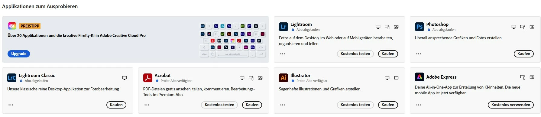 Bei den Anwendung oder in Creative Cloud steht abgelaufen.
