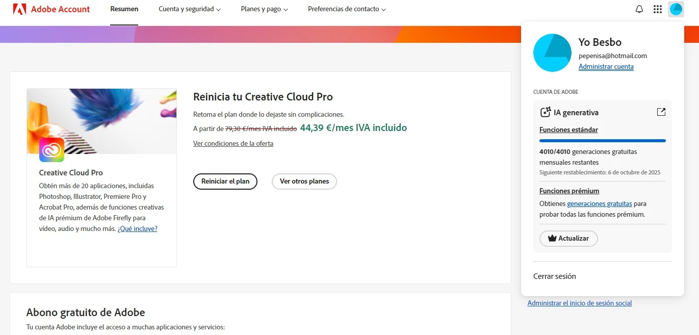 mi cuenta creative cloud falla