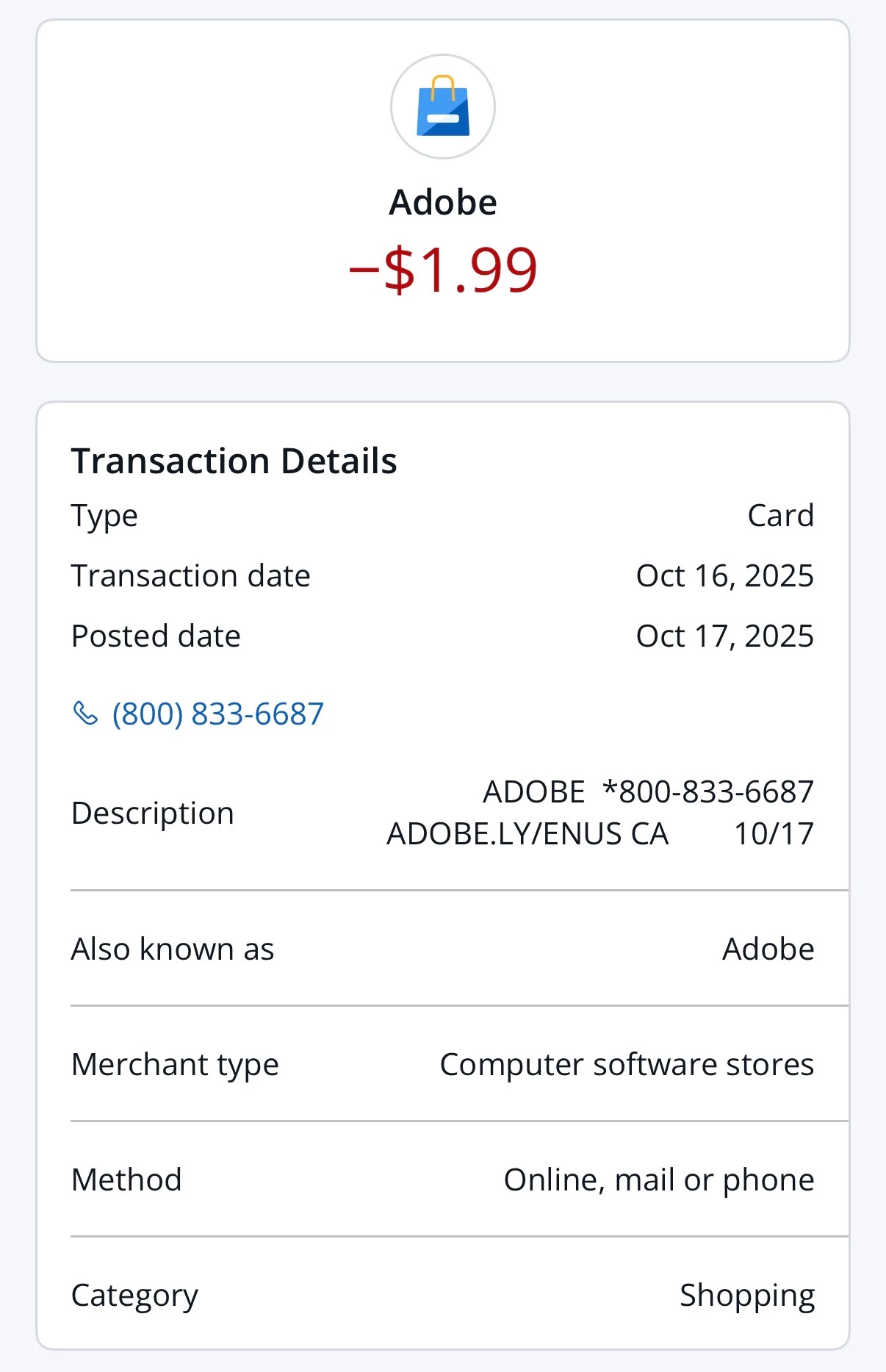 Monthly charge $1.99