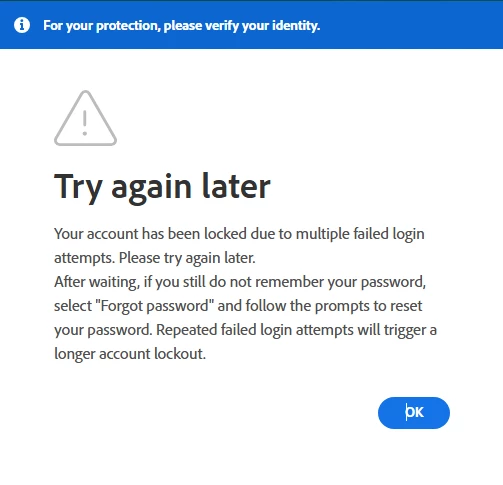 My Adobe account has been locked due to multiple failed login attempts, but I’m certain that I didn’t forget or enter my password incorrectly. This is a password I use frequently and haven’t changed recently.