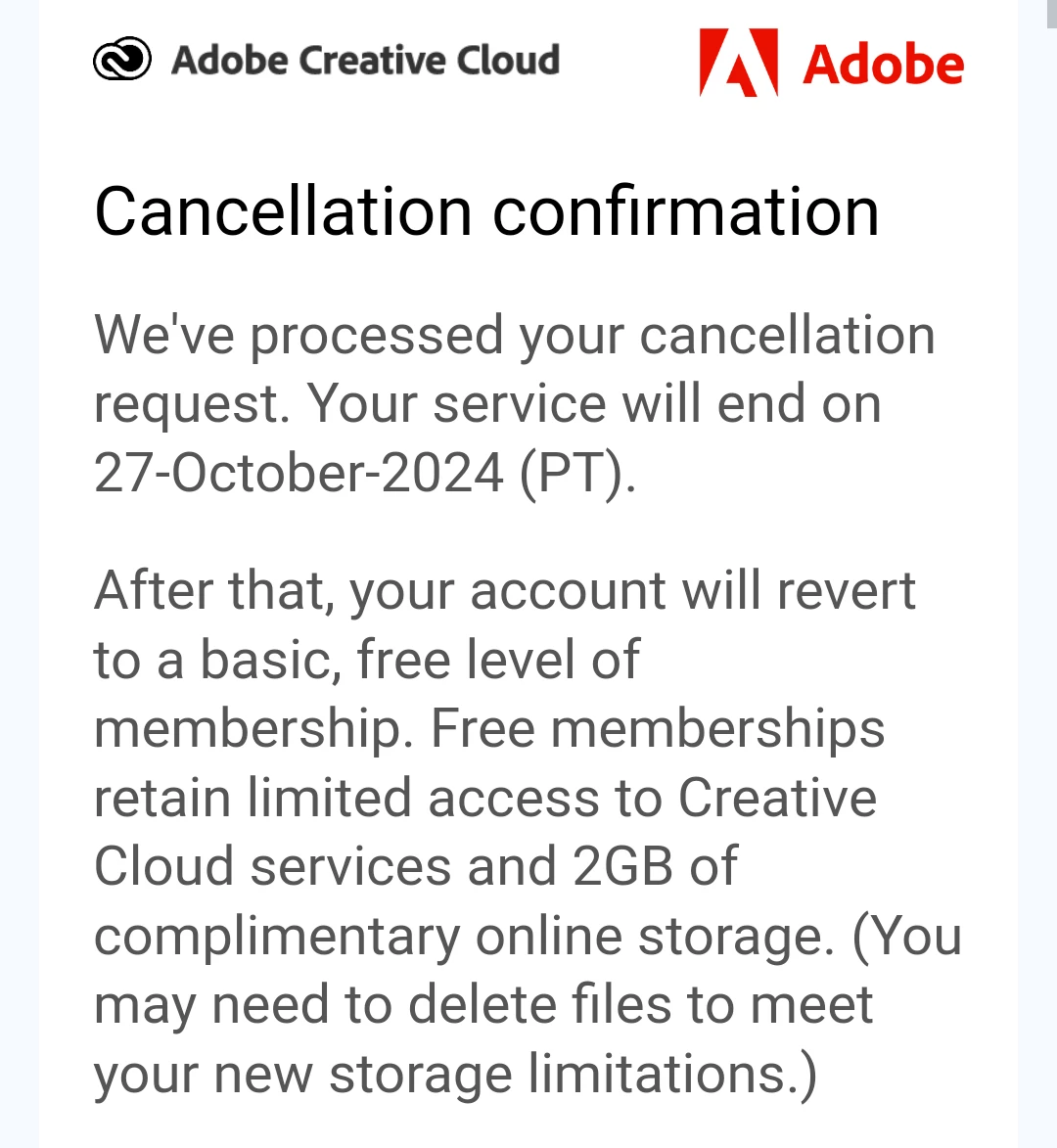 I have renewed my Creative Cloud plan which includes all the apps on 3 June 2024. On 27th October, I recieved a mail from Adobe stating thet my subscription was cancelled whereas I have requested no such cancellation. I would like to talk to a customer service representative to further gain clarity on the situation since I have already paid the annual fee amount and I wish to reactivate the plan without having to pay any additional amount. I have attached a screenshot of the mail I have recieved.