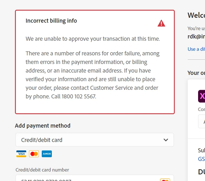 I have recurring payments with an Indian Credit card. There are some rules changed with credit card payments with Indian banks. I was not able to see Adobe as biller in my bank card or I cannot complete the secure order from my account. I cannot process bill payments other than credit card. Is there any way i can make payment for my adobe cloud or resolve the issue?