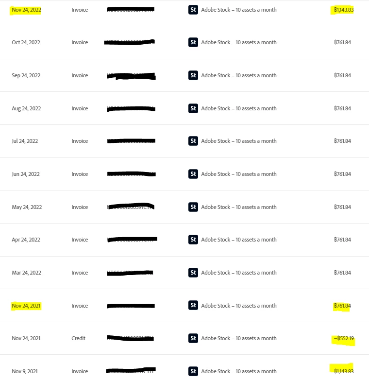 2) Today, I receaved your transaction = 1XXX THB. 1st Adobe staff tell me, it's the transaction of the new plan (start 25 Nov. 2022) . So i want to refund accept this part.