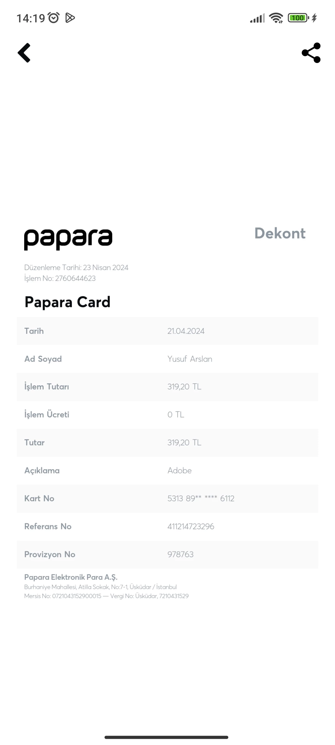 kartımdan habersizce Adobe ye para çekilmiş 319.20 TL lik bunun iadesini nasıl alabilirim
