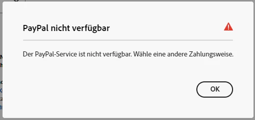 PayPal und Kreditkarte wird nicht akzeptiert