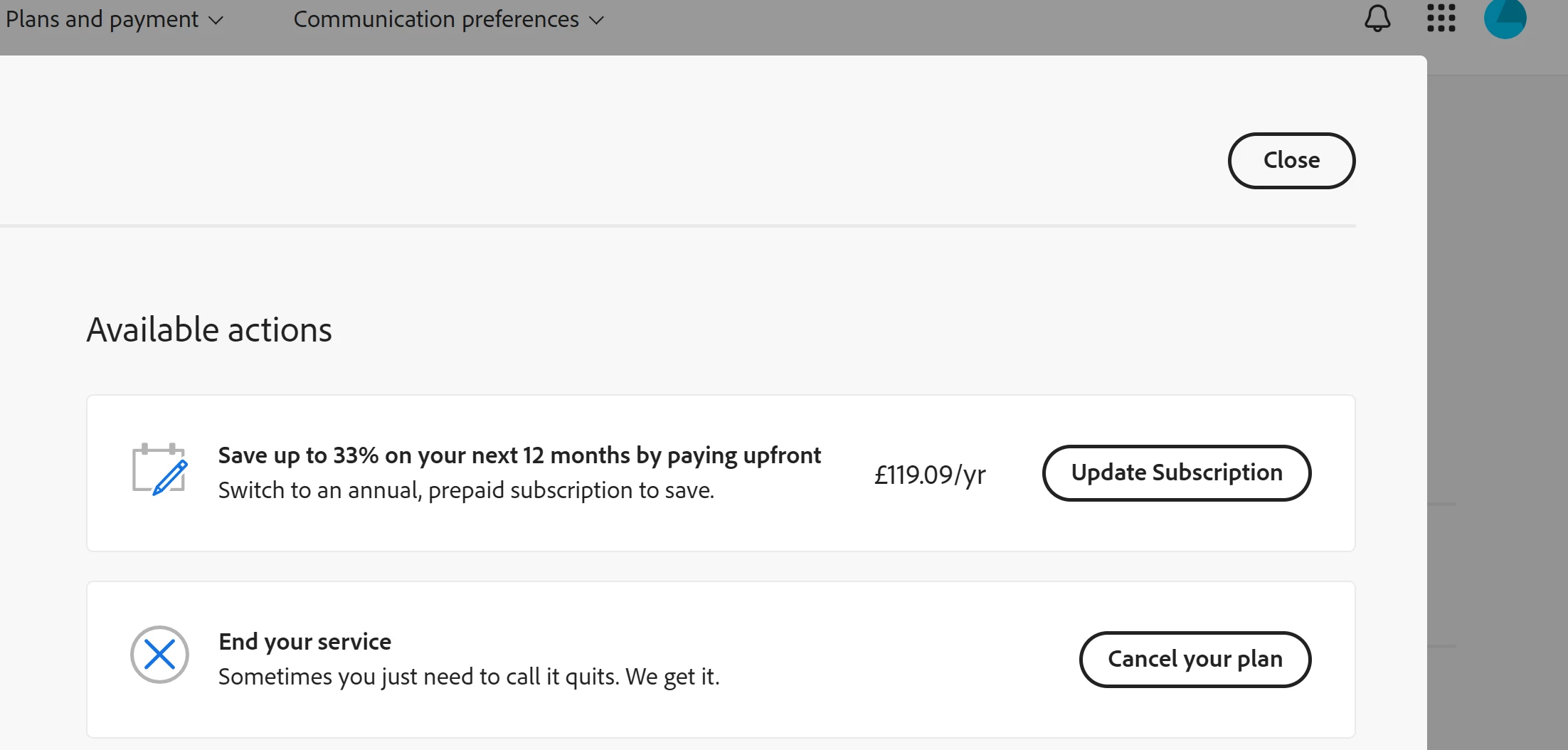 Photography Plan 20gb not allowing renewal