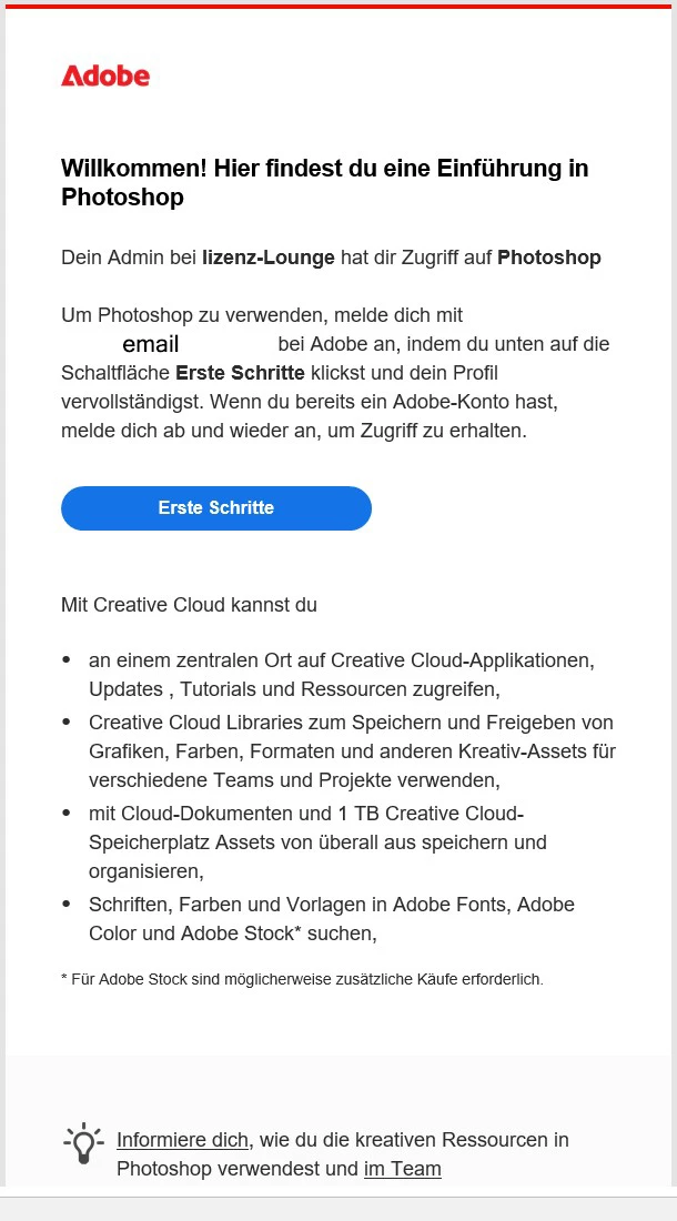 Photoshop Lizenzverknüpfung mit Adobe Händler-Portal