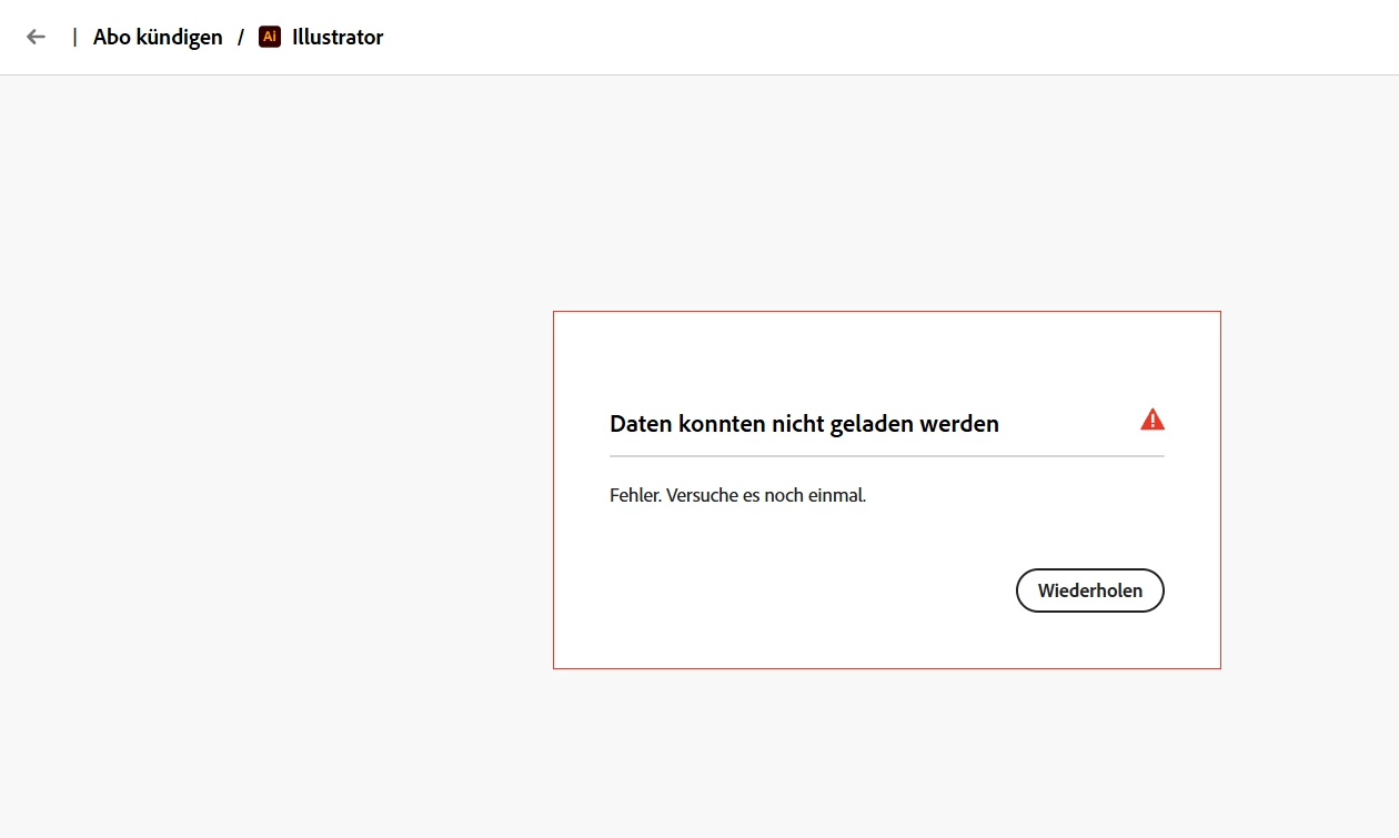 ich hatte vor einer Woche ein Illustrator Probe Abo gestartet, welches bis morgen läuft. Ich habe mein Projekt abgeschlossen und wollte das Probe Abo nun kündigen. Leider ist es mir nicht möglich dies zu tun. Ich habe es bisher schon knapp 50x probiert - in 4 verschiedenen Browsern, mit Inkognito Tab etc. - immer kommt die gleiche Fehlermeldung (siehe Anhang).