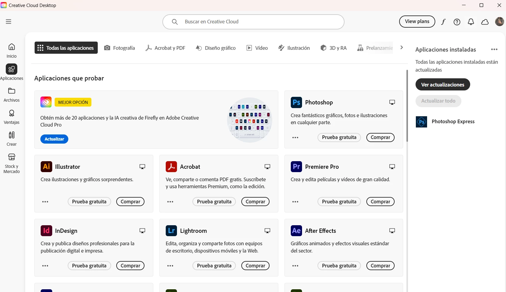Muy buenos dias, me acabo de comprar los dos planes de Photoshop , el primero en donde viene el PS cunto con el LR y el otro donde el PS viene solo y en ninguno de los dos la aplicacion me quiere instalar el PS y solamente me aparece prueba o compra ,¿que sucede? , a ¿que se debe eso? .
