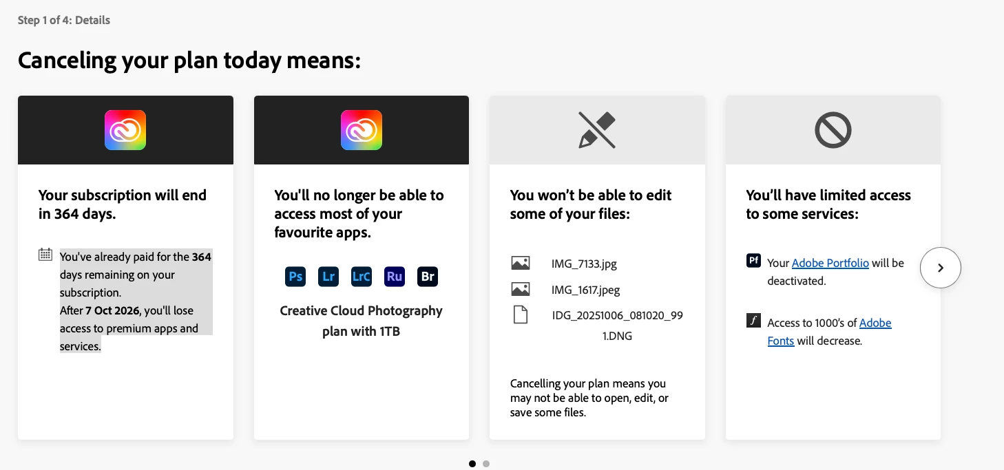 However, it has created a NEW 1TB plan that now runs concurrently with my existing 20MB plan which is totally useless to me as I do not need a 2nd Photography plan.