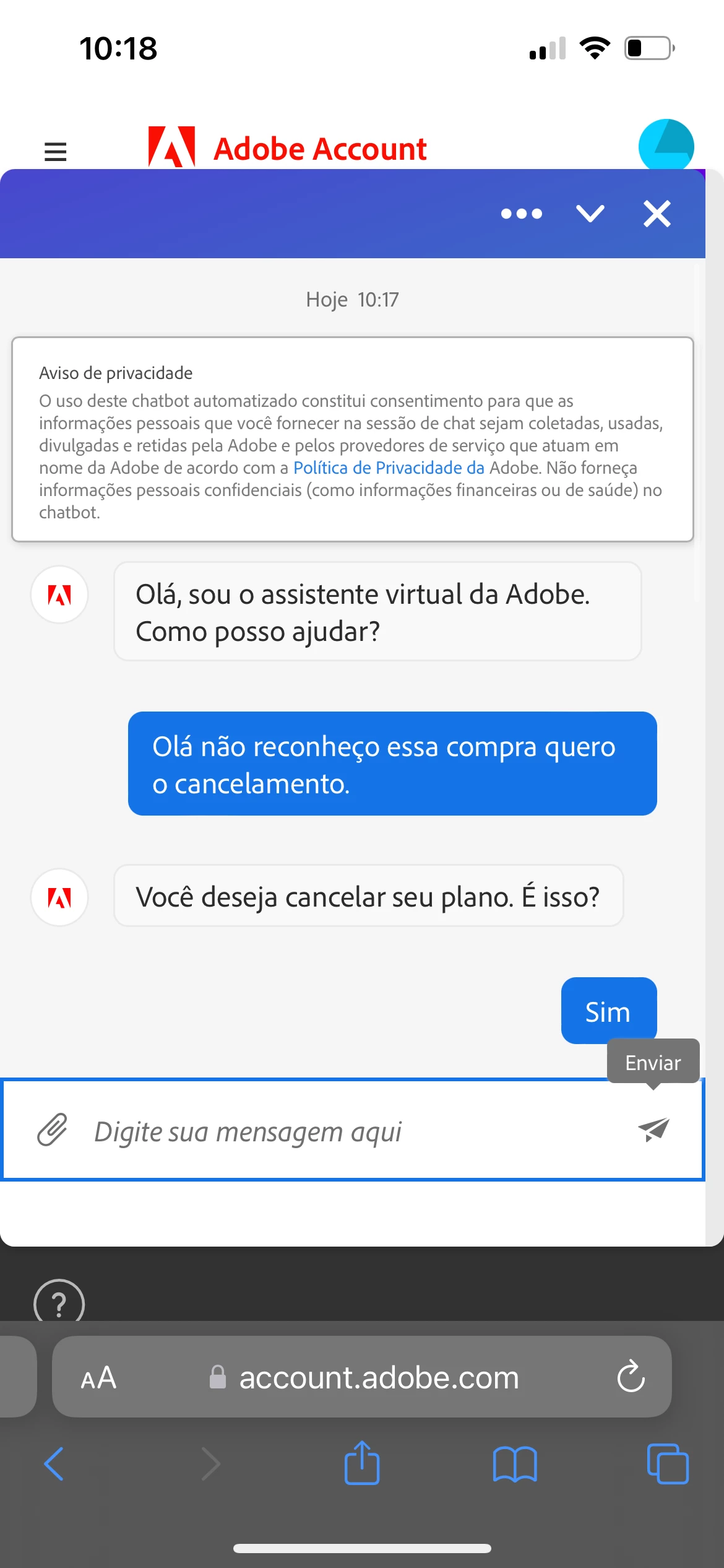 Quero o cancelamento da minha assinatura