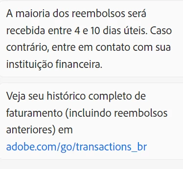 Eu fiz uma compra de todos os apps da adobe creative cloud dia 20 de junho, mas percebi que não usaria todos os apps e decidi cancelar dia 1 de julho me falaram quem em 4 a 10 dias uteis me reembolsariam, só que só emitiram o memorando de crédito e não me pagaram até hoje dia 09 de agosto. Falei com o banco falaram que é a empresa que tem que pagar não tem a ver com eles peço que me respondam já passou 1 mes e não devolveram meu dinheiro.