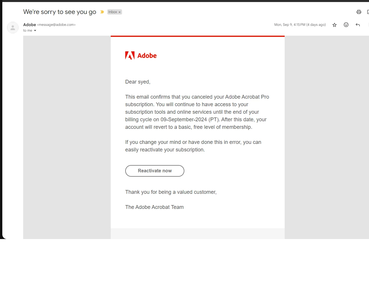 I opted for a free trial of Adobe Pro and Illustrator, and while I cancelled the Pro trial in time, I may have forgotten to cancel the Illustrator subscription. I noticed a charge of $34.49 USD for Illustrator on September 13, 2024, despite having no activity or use of the app.