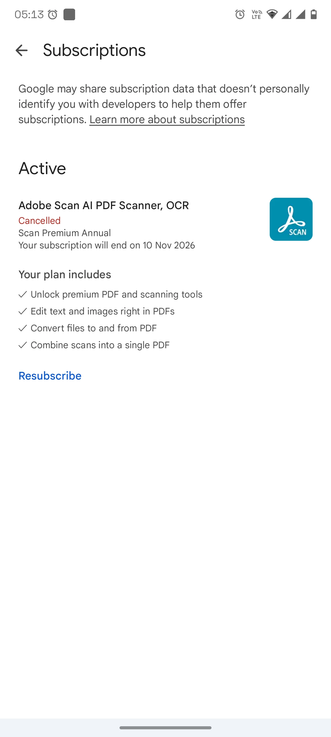 Dear Sir I was using your trail version form adobe scanner but it was accidentally debited 6200 from my account without prior information,same time I was cancelled this subscription because it is not useful for me, but after cancellation my refund is not initiated.