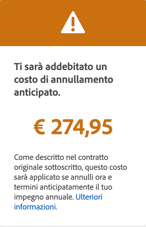 Ho provato ad annullare il mio piano di abbonamento, ma al momento dell'avanzamento mi dice che mi sarà addebitato un costo di annullamento anticipato € 274,95.