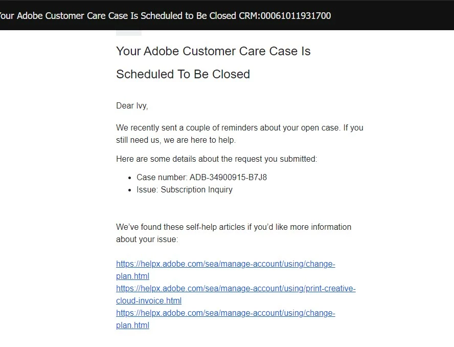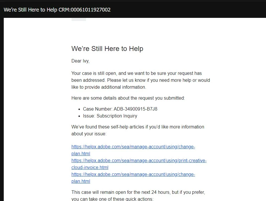 6. They tried to forcefully close the case while sending us links about their KB.