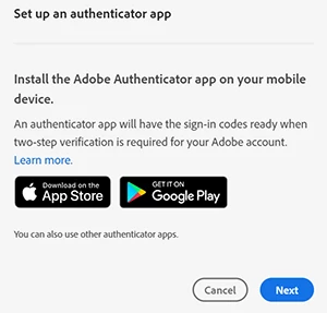 That’s what I did - I read the article you refer to before posting. I click "set-up” which brings up a pop-up to download the “adobe Account Access app” sometimes all referred to as the “Adobe Authenticator” launching the app on my phone gives me one lonely option “scan code” which brings me back to my post: Which code? Where do I get the code?