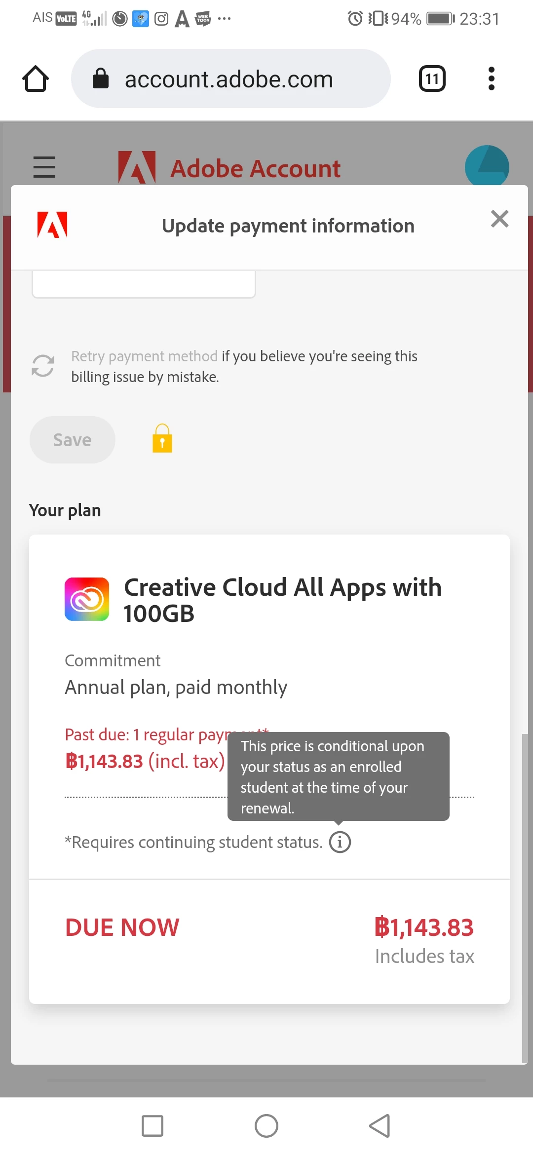 Chanya, please see https://helpx.adobe.com/x-productkb/policy-pricing/education-faq.html for information on Adobe's educational programs. If you have any additional questions, or need assistance verifying that you are attending an educational institution, then please begin a secure chat session at https://helpx.adobe.com/contact.html?rghtup=autoOpen so a member of our support team can assist you.