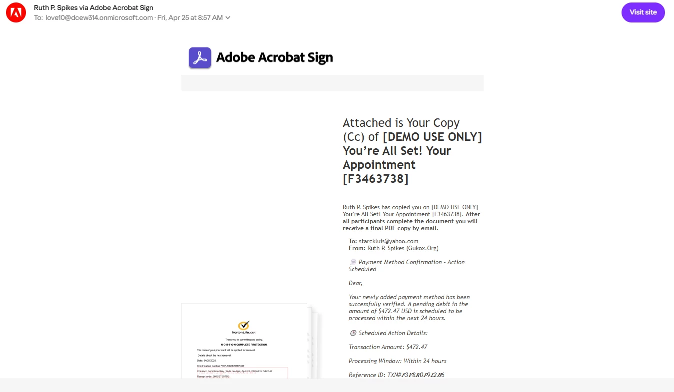 Suspicious email from Ruth P.Spikes via Adobe Acrobat Sign? . Possibly a scam email