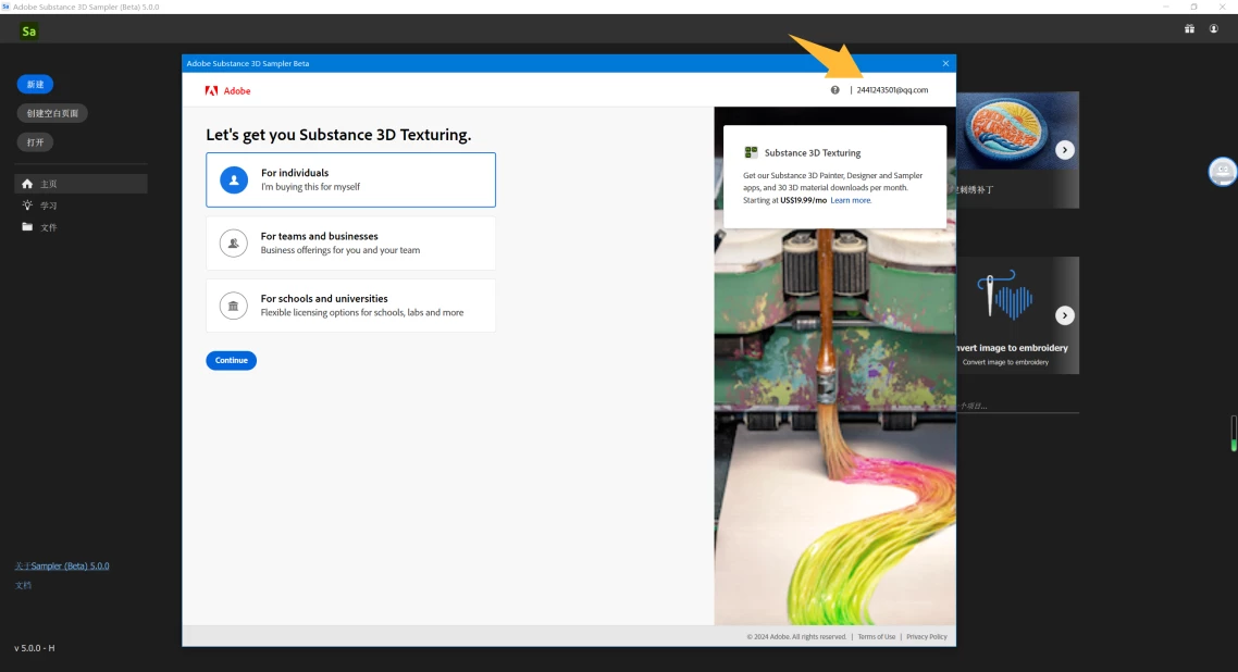Hello, a while ago I submitted a testing invitation for Sampler 5.0 in a report, and the result was that I was selected. My email also received the testing invitation link, and I have successfully downloaded and installed Sampler 5.0. However, when I open the software, Adobe's substance subscription plan always pops up. If I don't pay, I will still be unable to use the beta version. If I close the subscription window, the software will also close. I logged in to the same account on Creative Cloud. How can I solve this problem now?