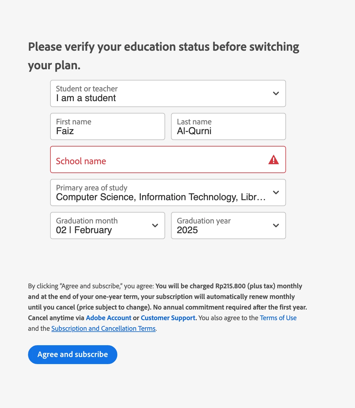 I'm trying to change my plan to an education one but when I go to input the school name it does not allow me to, meaning I can't change the plan. Any help would be appreciated.