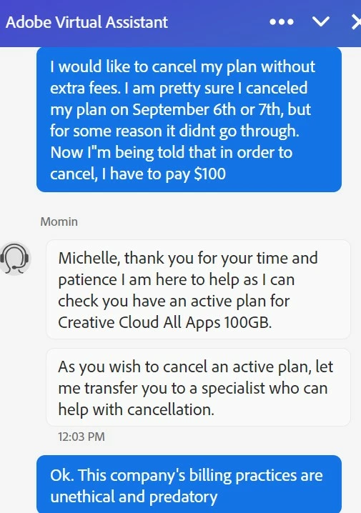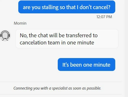if you want to cancel but are unable to follow the steps described in the "how to cancel page", contact adobe support.