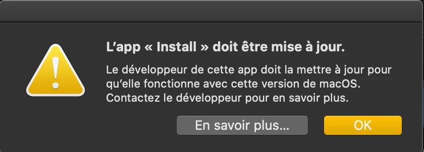 je voudrai mettre à jour mon application "Install". Lorsque je veux ouvre cette App, un message d'erreur apparait (voir la photo). Pouvez vous m'aider?