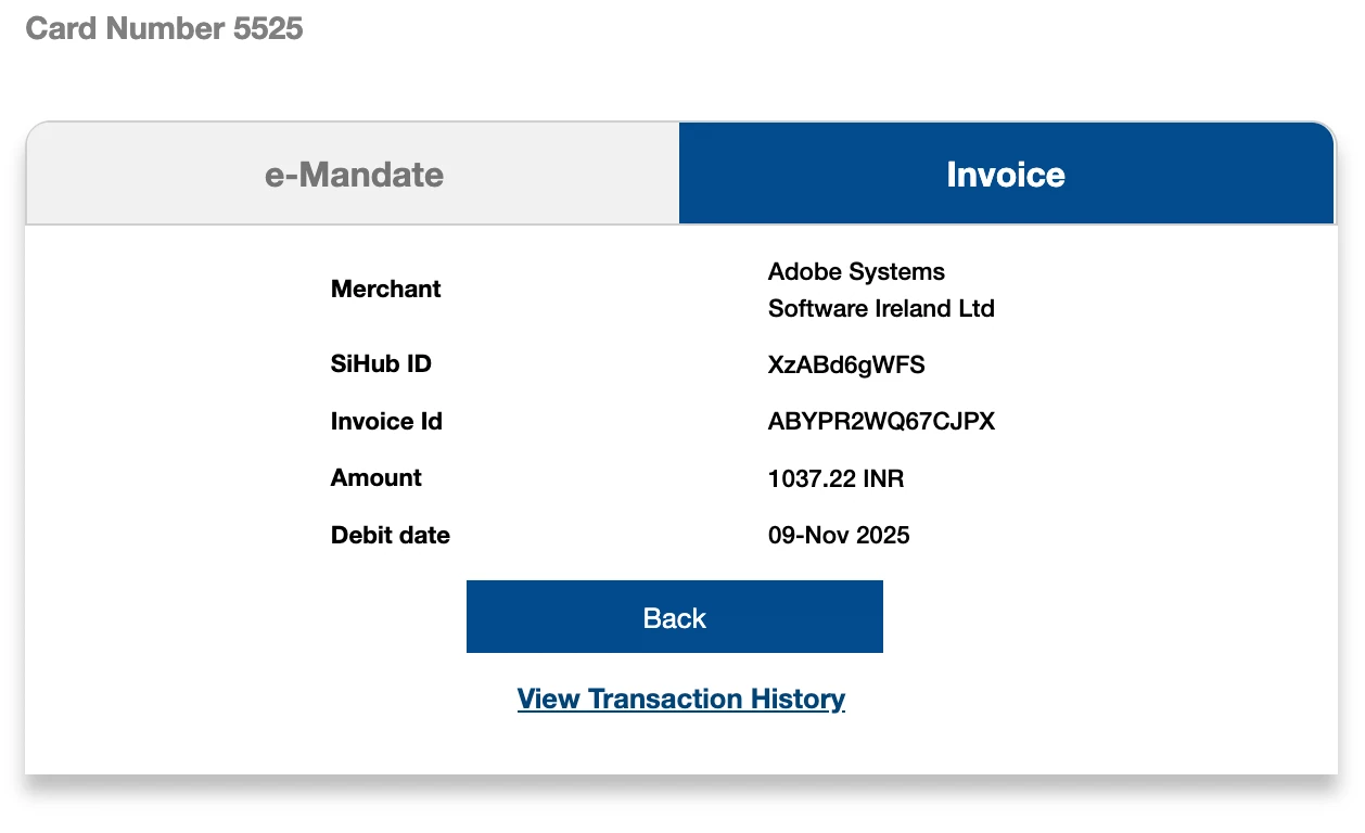 The debit card linked to this account is typically kept without a balance. However, a small amount of money was unexpectedly credited to the card earlier today, and immediately thereafter, a payment of 1037.22 INR was processed via auto-pay.