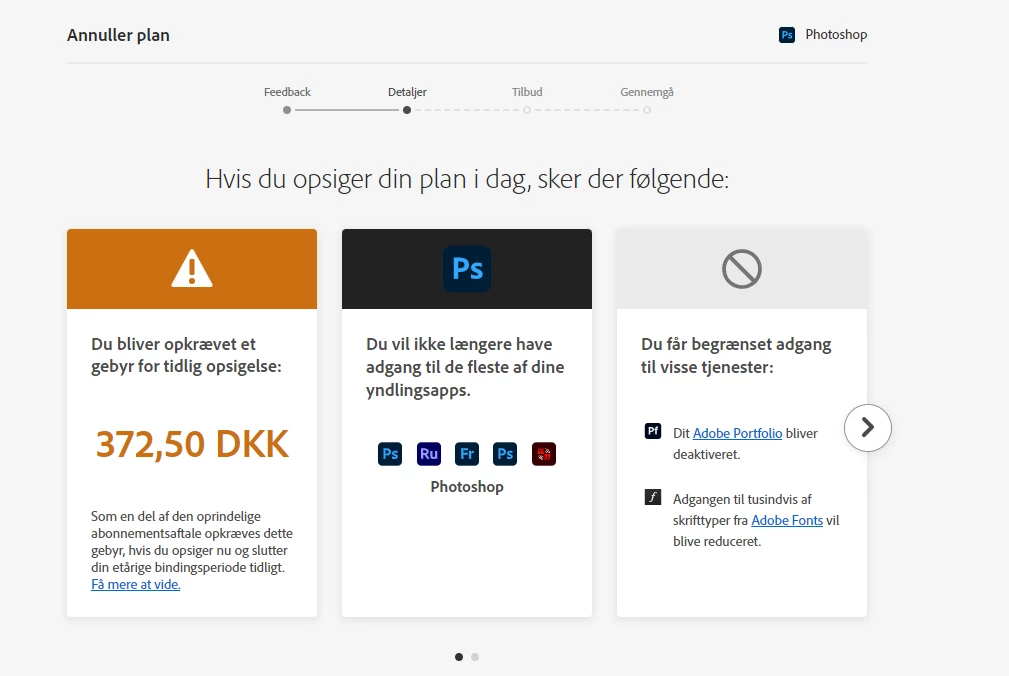 (screenshot is in danish but says that a i have to pay for the remainder of the period)