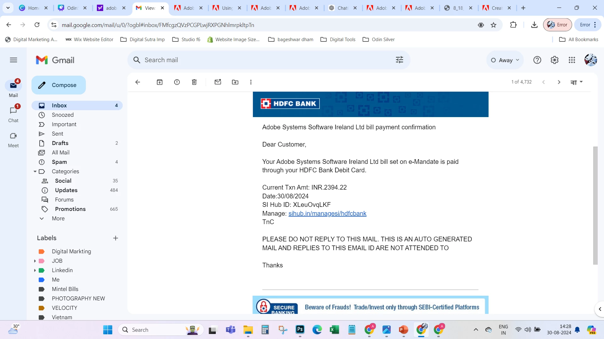 Out of blue I got a message from my Bank that Adobe Ireland has charged me Rs 2394. I dont have any active plans or have subscribed to any software. I did take a free trail of acrobat but had ended it much before. My Adibe Id is REMOVED and customer number is REMOVED Kindly help.