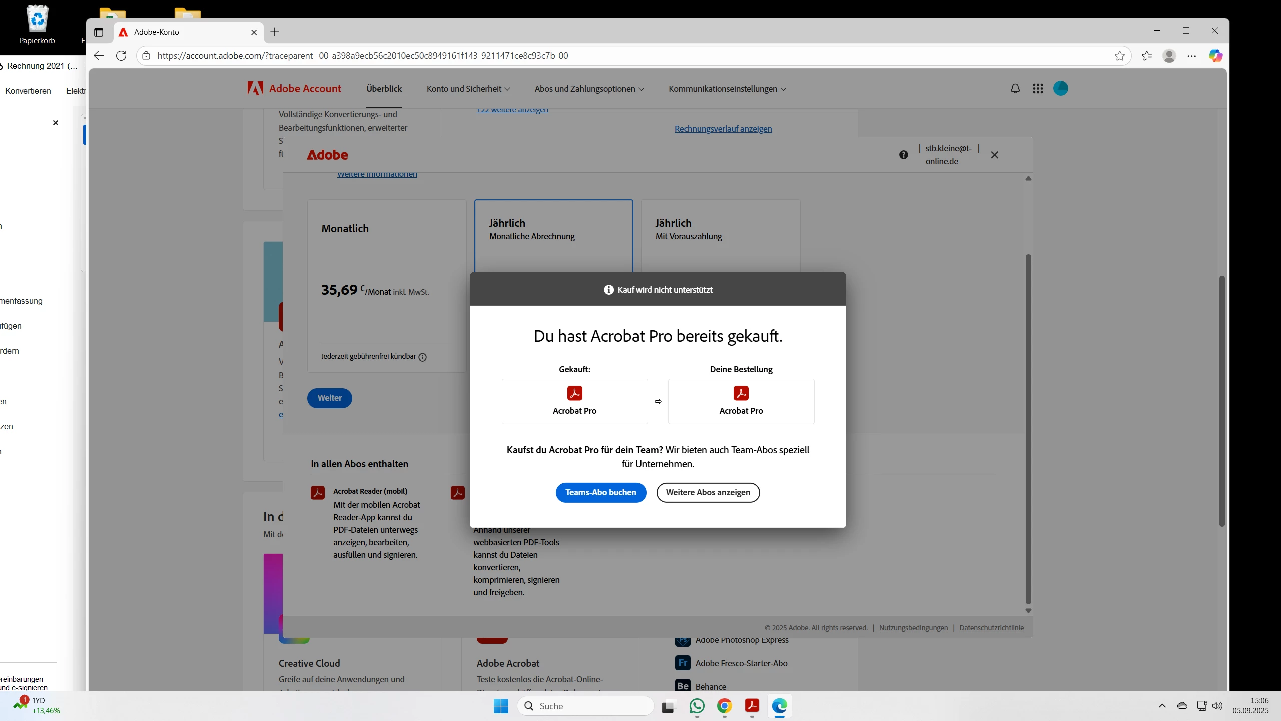 Laut meinem Konto besteht ein Abo Acrobat pro, obwohl ich keine Abbuchung habe.