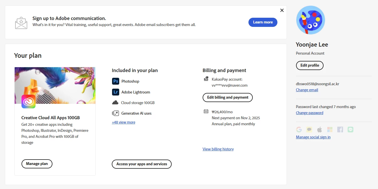 첨부된 첫번째 사진과 같이 홈페이지 상에서는 제 구매 내역이 확인되는 반면, 해당 계정으로 가입한 creative cloud 상에서는 엑세스가 종료되었다고 뜨며 실행이 안되고 있습니다. 지난 기간들에 대한 환불 요청 및 어도비 앱 실행을 요청 드립니다.