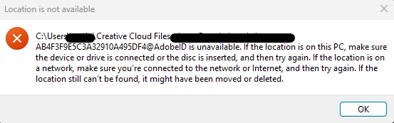 Adobe CC Files shortcut in sidebar (Windows 11)