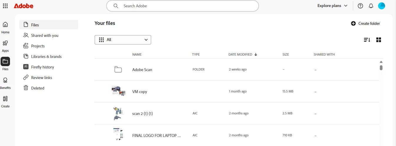 Adobe Creative Cloud Files section / Adobe cloud files section