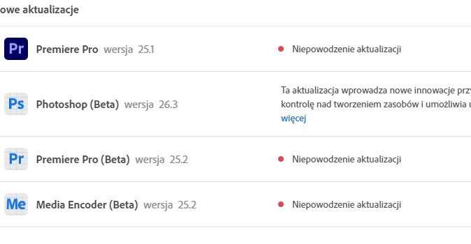Secondly - creative cloud shows that there are other updates available, but it always crashes and show a message about the failure of actualization.