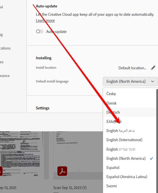 The red arrow is pointing to the "English with Arabic support". This option will allow the user to download a Middle Eastern (ME) version of Adobe applications. The ME applications comes with a full English Interface, however, it provides extra right-to-left options and controls.