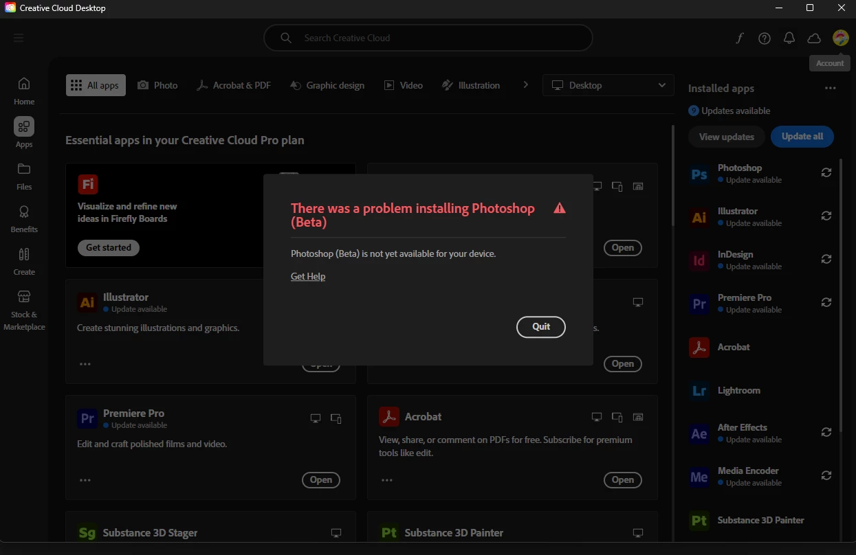 My adobe creative cloud does’t show the beta tab. Although I reupdated the cloud version and delete cache. What should I do to install photoshop beta?