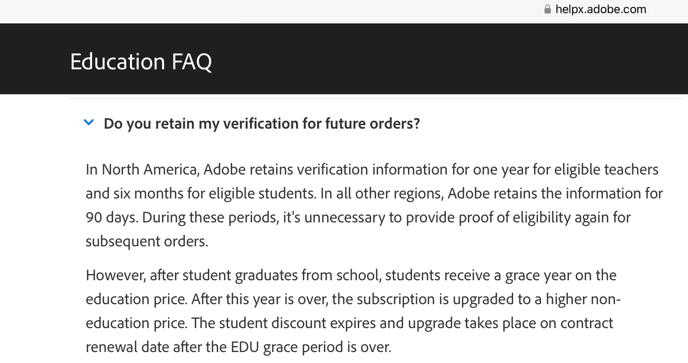 I have been graduated in last June. Can I still purchase the student version of the Creative Cloud, even if I don't have the University's email anymore? I read on somewhere that you can access student version an year after graduation. I have a Student Certificate from last May and a Diploma from June. When I try to purchase the student version of CC and I put graduation date there, it not allow me to continue purchase, because graduation date is not eligible. Is it the case that I can't use the student version, even though it's not been a year since I graduated?