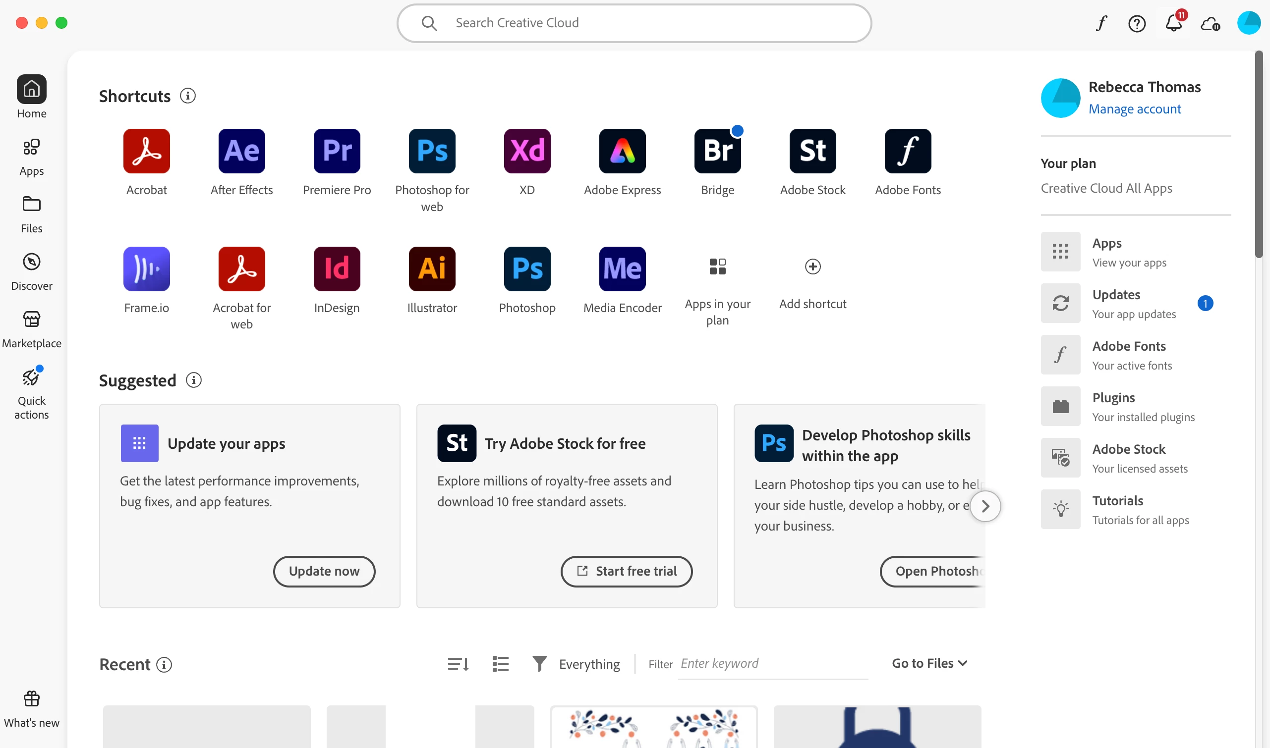 Can't find gear icon in adobe creative cloud desktop app