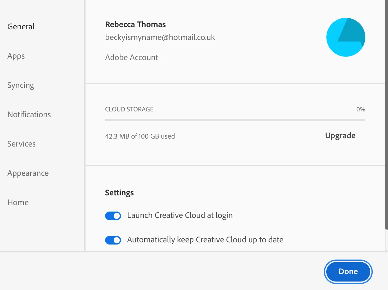 Clicking on 'Adobe Account' takes me to the Adobe website and if I sign out and in to the school account through there it doesn't change the profile in Creative Cloud.