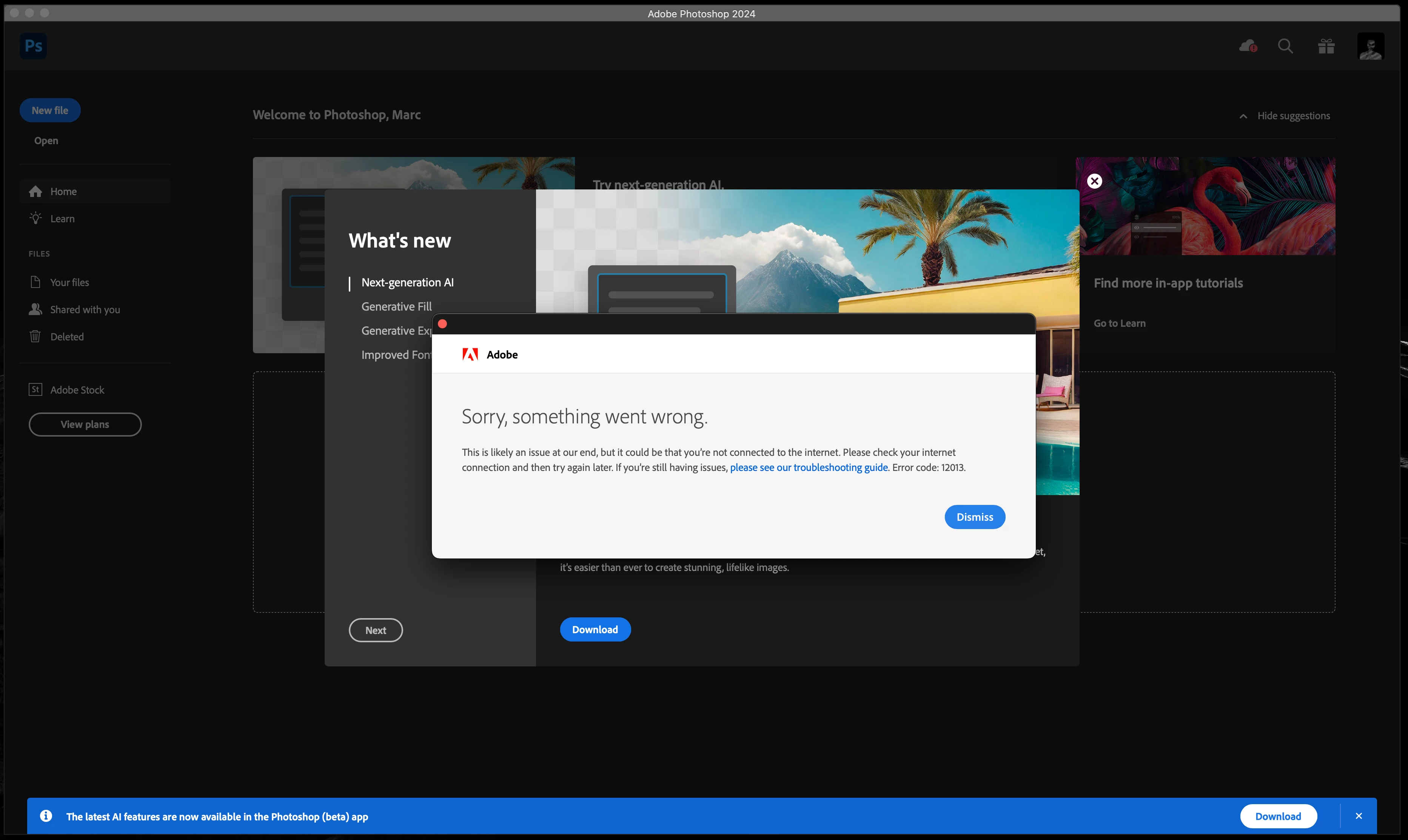 It's been a week since this error showed up. I was opening and using Creative Cloud app with ease, the next day i received this error while opening any app. And ever since Adobe Agents were unable to help me out. I'm using a macbook running macOS Sonoma 14.4.1, I don't understand how that happened but would really appreciate any help.
