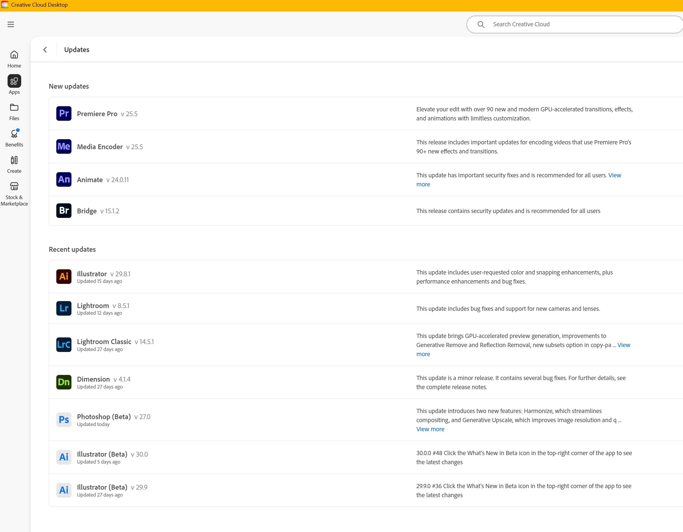 Thanks for the screenshot. You may see multiple Illustrator Beta entries because the Creative Cloud app can show different release series at the same time (for example a 29.x BETA alongside a 30.x Beta). Currently, Illustrator has 29.9 and 30.0 both build available in Beta for testing and you have downloaded both. That's why two Illustrator versions appear in the Updates list.