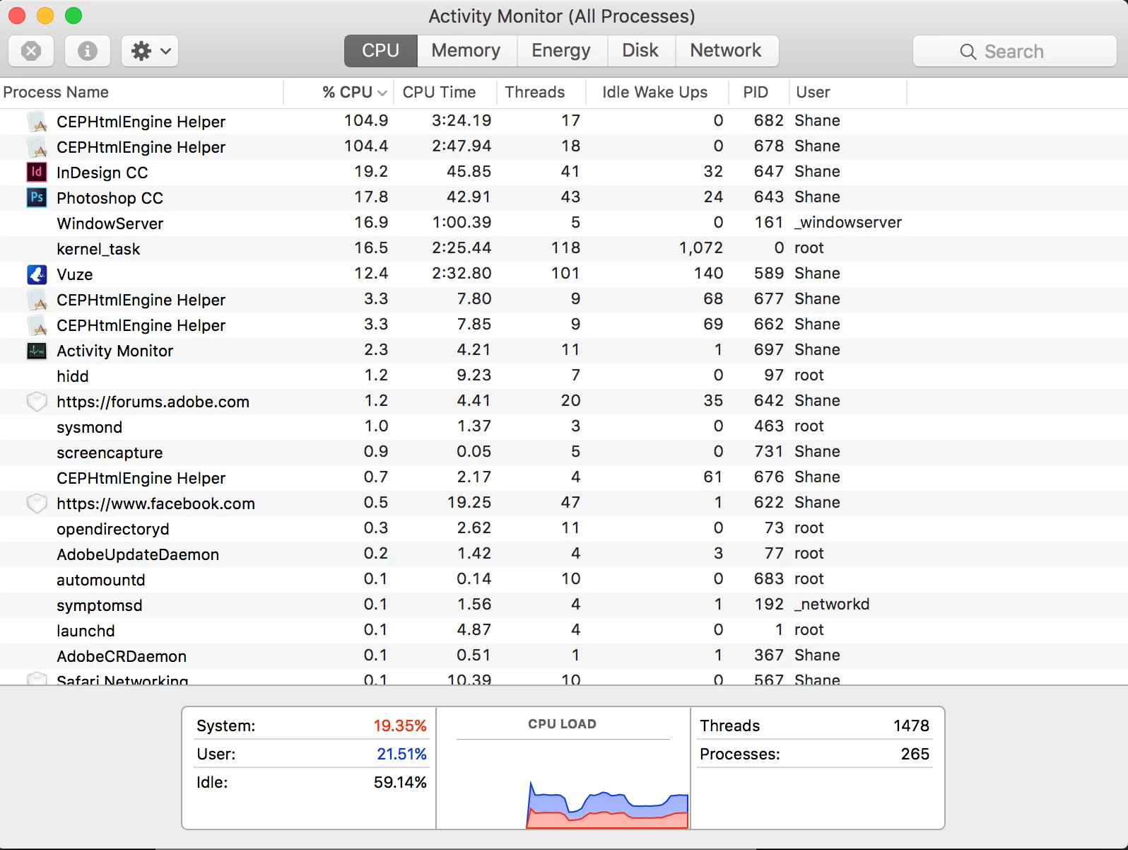 Ever since i upgraded to a 2015 Macbook Pro Retina and installed Adobe CC I started have issues with my fan running at high speed while using apps, so after many trials and conversations with adobe customer care and help desk i managed to work out that if i completely deleted the CEPHtmlEngine files it removed the startup menus and CC libraries panels from all apps so i uninstalled the software then reinstalled of course the issue came back so found that disabling cc sync it actually fixed the fan issues and i was able to use cc libraries but them today while i had indesign and photoshop both running the fan issue arose again until i closed 1 app down, not ideal as sometimes you want to be ale to flick between apps. This issue never happened on my 2012 macbook pro i use to be able to have about 3 apps open at once. Never any fan issues. Any ideas is this is a CEPHtmlEngine bug? Hopefully adobe are aware and are looking into it. Cheers AdobeCC