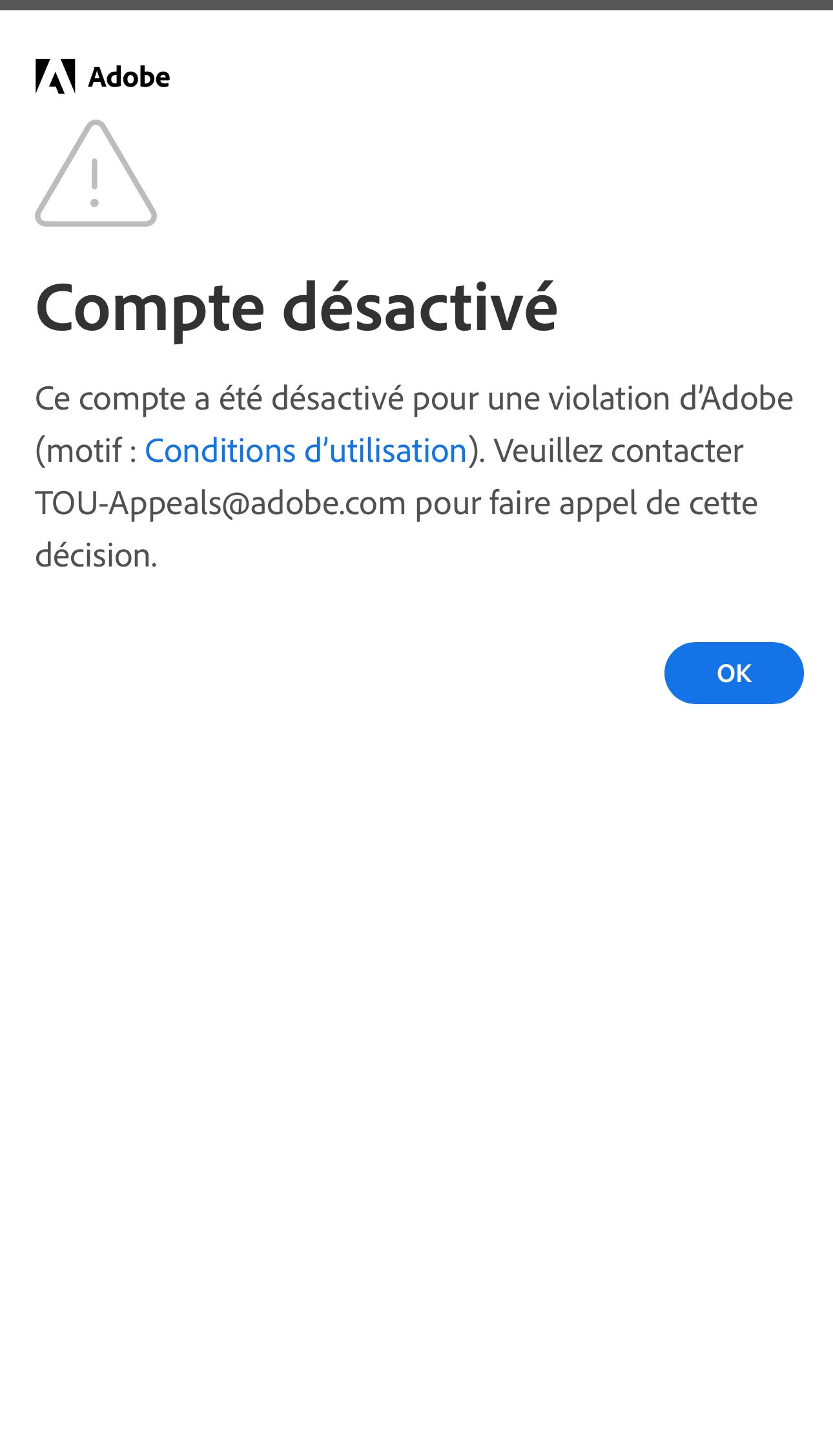 adobe ne veut pas réactiver mon ancien compte