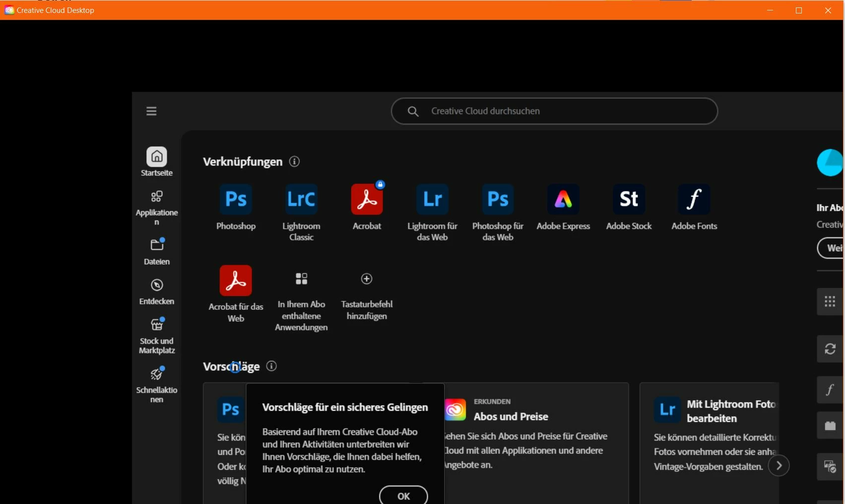 Creative Cloud Desktop wird fehlerhaft angezeigt