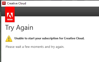 Creative Cloud error - Unable to start your subscription for Creative Cloud