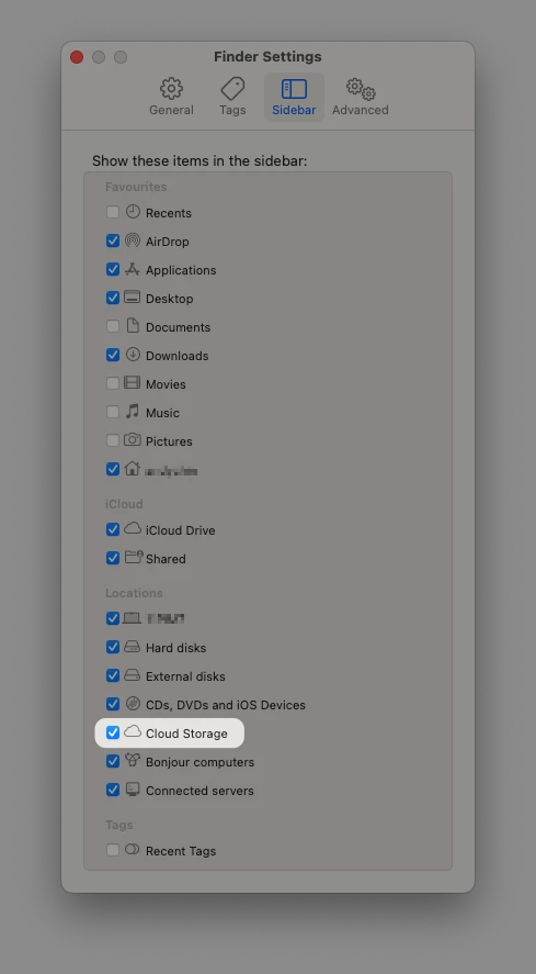 Other cloud services seem to show as Cloud Storage but not Creative Cloud Files folder.